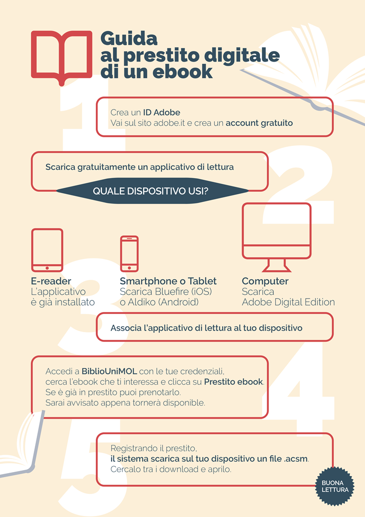 Il Prestito digitale o Digital lending è il servizio che consente di leggere sul proprio computer o dispositivo mobile gli ebook resi disponibili dalla biblioteca.